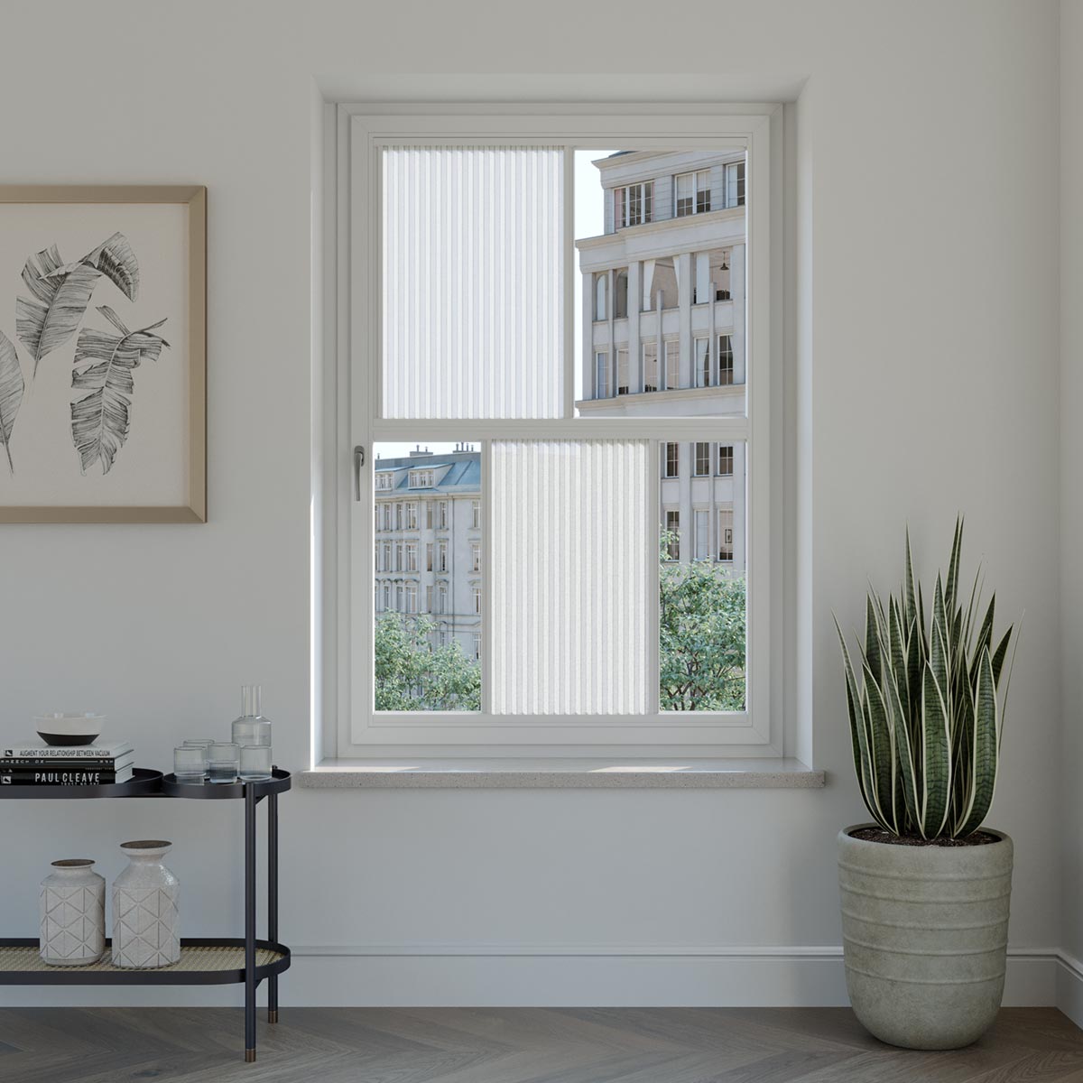 Tenda da vetro con tessuto plissettato, a scorrimento laterale. Struttura in alluminio, per serramenti di piccole dimensioni.